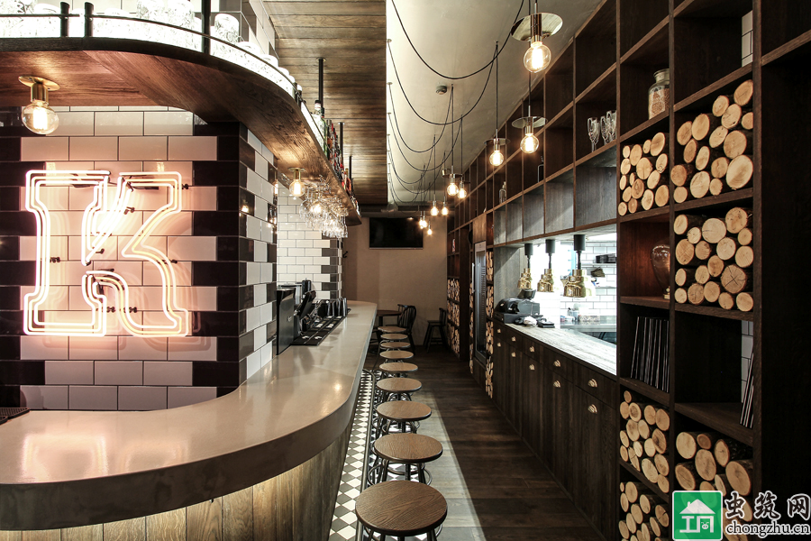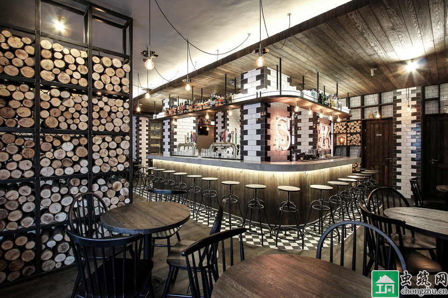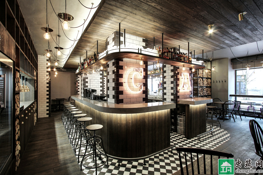 培養(yǎng)現(xiàn)代肉類生產(chǎn)的趨勢的名字,酒吧老板,進一步促使內(nèi)部發(fā)展。在房間的中心,有一個規(guī)避酒吧,這是一種錯覺,一個木制的桶在盤子和圓角。同樣的板用于天花板完成。表表面保稅從同一個盤子似乎也復制桶的蓋子。陳年橡木地板覆蓋在烏木色素。相同的顏色是用于所有木制品??臻g充滿了深灰色的詳細描述:黑色金屬結(jié)構等,灰色瓷磚部分使用的模式,掛線,混凝土桿上的椅子。