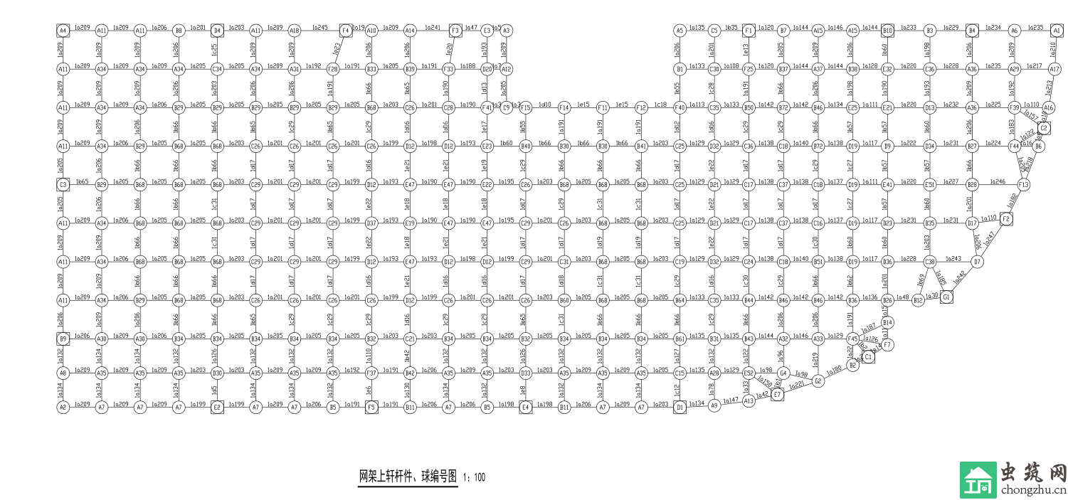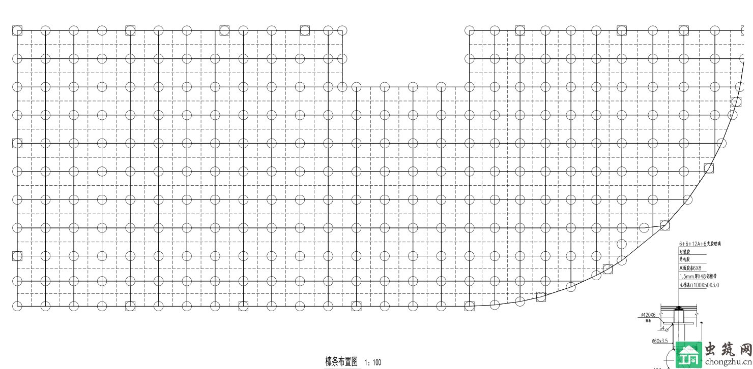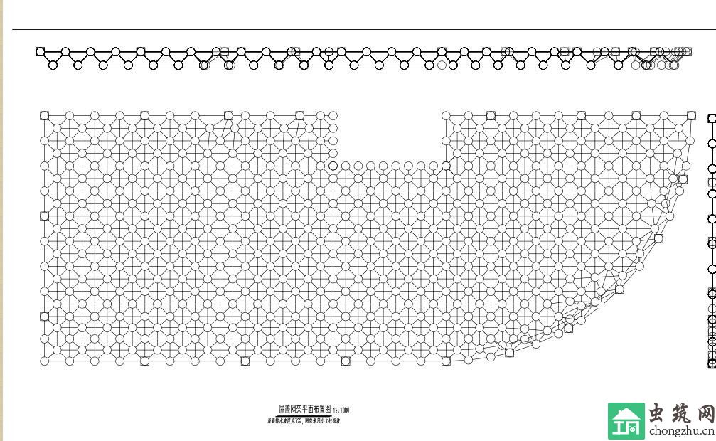 甘肅省天水市辦公樓屋頂采光頂,采用正放四角錐網(wǎng)架結(jié)構(gòu),跨度22m,總建筑面積1200平方米。