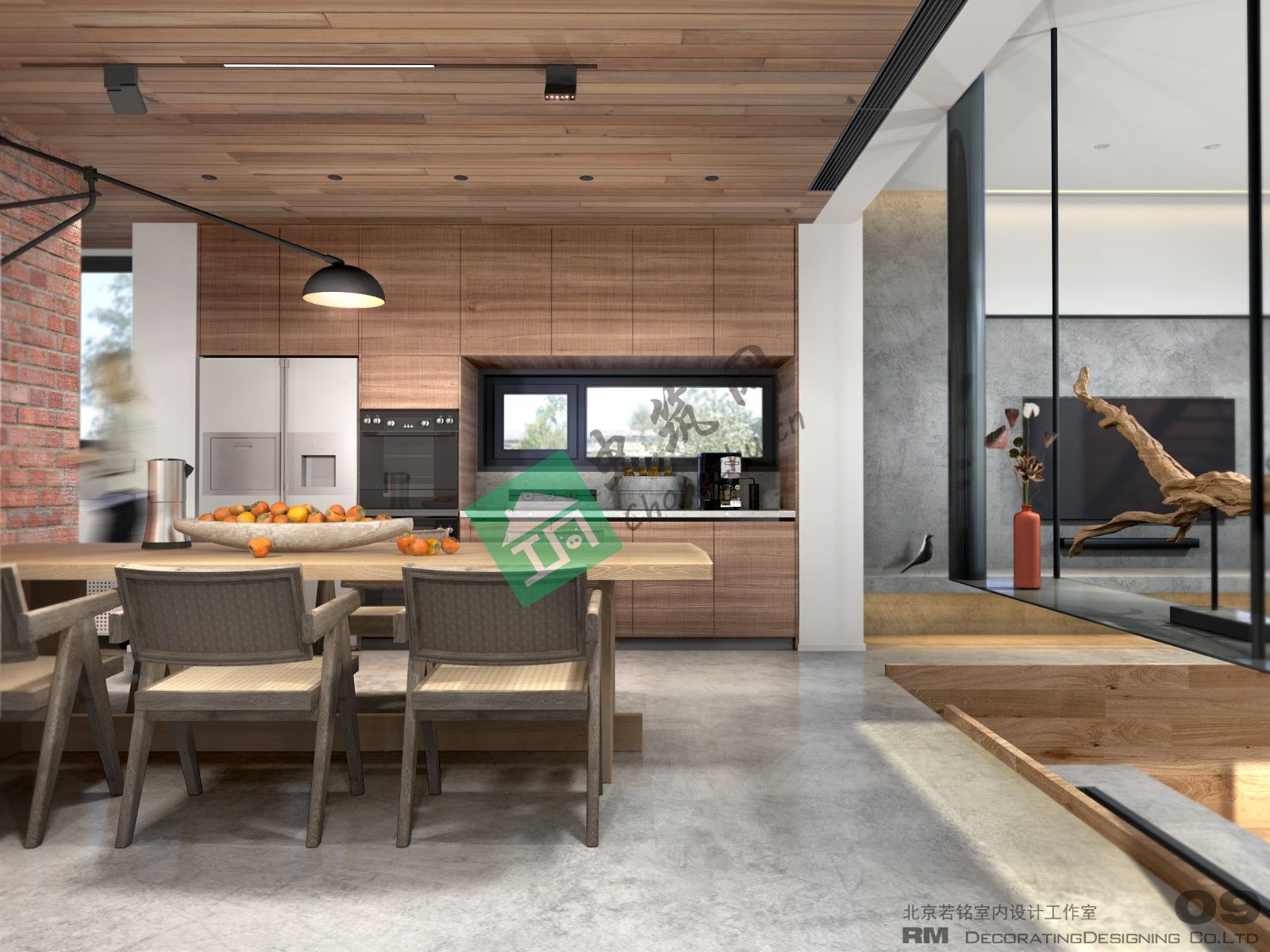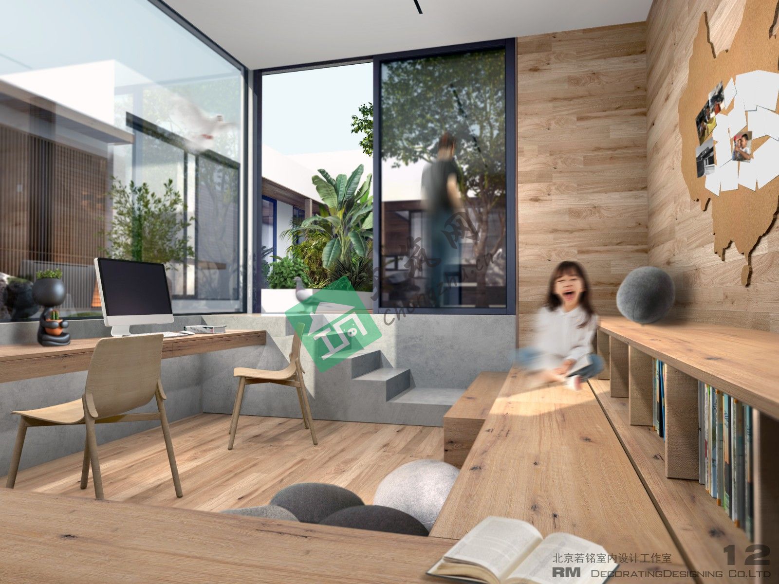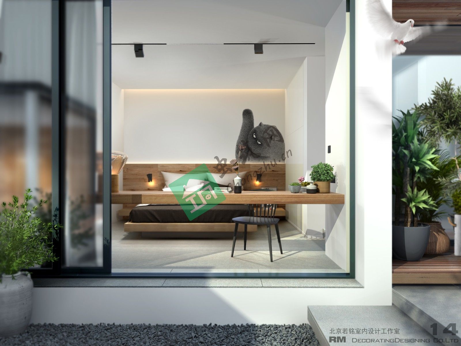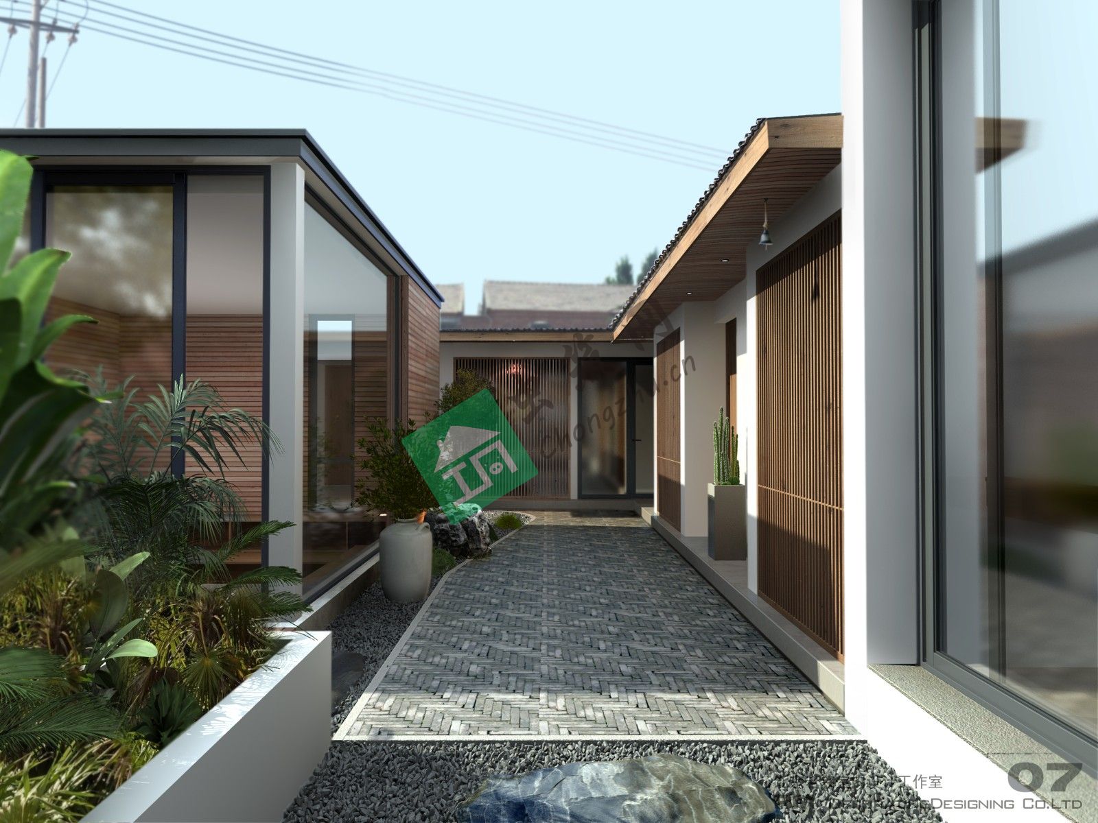 依據(jù)長條矩形的地形,依次布局為前廳是功能區(qū)域包括:玄關、健身、公共衛(wèi)生間、雜物、客房及圖書室;中庭為休閑庭院區(qū)域;南向采光最佳的后庭位置,是聚會活動場所,包括一室客廳、餐廳、廚房等交流公共活動空間。入口玄關低調(diào),阻隔了院外的視線而無意顯山露水,保證院內(nèi)私人空間的私密。一曲轉(zhuǎn)折,踱步為景,三步兩步便是下沉庭院過廳。高低落差,讓空間的銜接形成一個過渡,導向性的景觀讓入口后的景致顯得生動。東向兩間客房及主臥室透過木質(zhì)格柵、大面積玻璃窗,讓東升的朝陽第一時間撒入室內(nèi)。健身室面北,公共衛(wèi)生間處于相對隱秘的位置,與客房相鄰,便于使用。下沉式的兒童圖書室活動空間,讓視線與室外形成落差,環(huán)形的空間讓活動更加自如。拾級而上,是開闊的中庭庭院,錯落分為兩部分。木質(zhì)地臺與圖書室內(nèi)空間銜接,一階之上,是戶外聚餐、燒烤。木質(zhì)連廊為過渡區(qū)域,南向正廳為聚會主要空間。開放式的格局、下沉式的會客視聽區(qū)域、通透的大面積玻璃門窗,使空間明亮且開闊。室外樓梯下方,取景入室,形成室內(nèi)景觀,依約的陽光射入,混淆室內(nèi)外的界限。主臥室簡約平和,通透的落地玻璃推拉窗,讓室外庭院的景致一覽無余。家庭式客房滿足三口之家的需求。