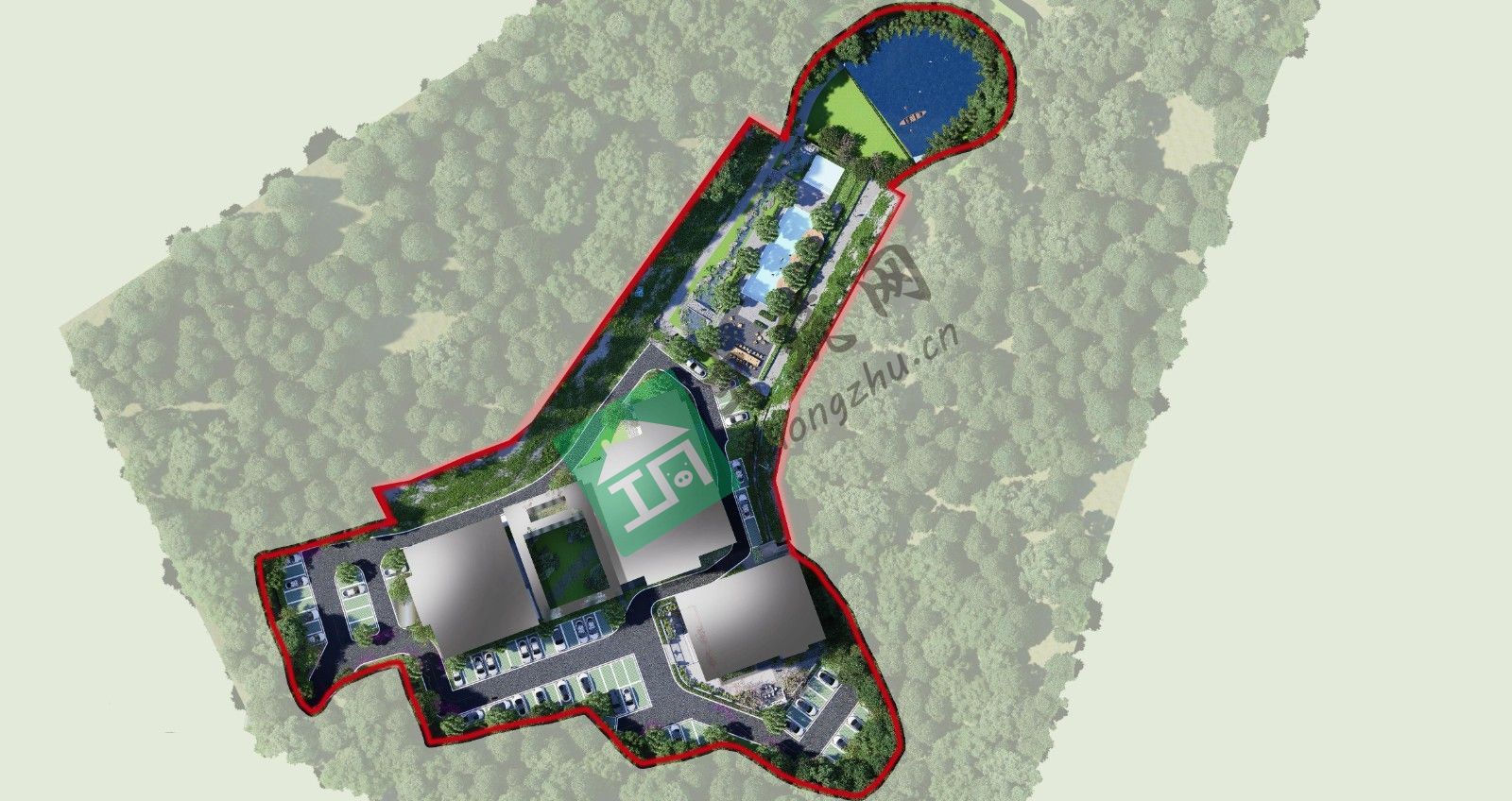 本項目選址河源市紫金縣九和鎮(zhèn),規(guī)劃充分考量場地與周邊自然環(huán)境的融合。以紅線圍合界定項目范圍,整體布局依托場地形態(tài),呈線性與組團結合模式。將溫泉休閑區(qū)置于場地端部,利用天然地勢打造集中泡池與景觀湖,借山水之勢營造沉浸式溫泉體驗;民宿酒店主體建筑組群布置于場地中下段,與溫泉區(qū)形成功能銜接,既保障溫泉配套服務便捷,又通過建筑間距與綠化隔離,維護住宿區(qū)靜謐氛圍 。周邊茂密山林為天然生態(tài)屏障,規(guī)劃保留并強化場地與自然的滲透,讓建筑?“生長”?于山林綠意間,實現(xiàn)人工建設與自然環(huán)境共生。